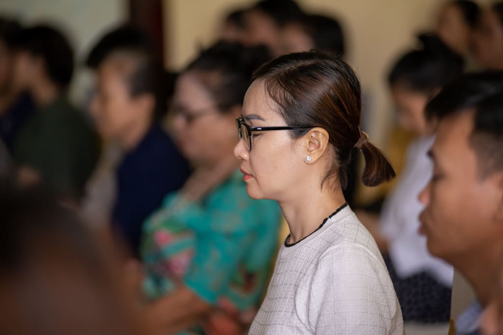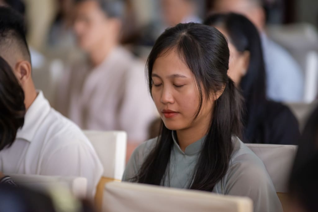 Sau giờ ăn trưa, tất cả mọi người đã cùng tham gia vào buổi thực hành thiền năng lượng kéo dài 20 phút. Đây là khoảng thời gian yên bình để mọi người tập trung vào hơi thở và dòng năng lượng bên trong mình, mang lại cảm giác thư giãn và tịnh tâm.